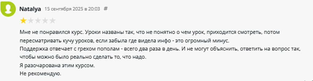 - сотрудники школы неохотно отвечают на вопросы слушателей после оплаты курса;