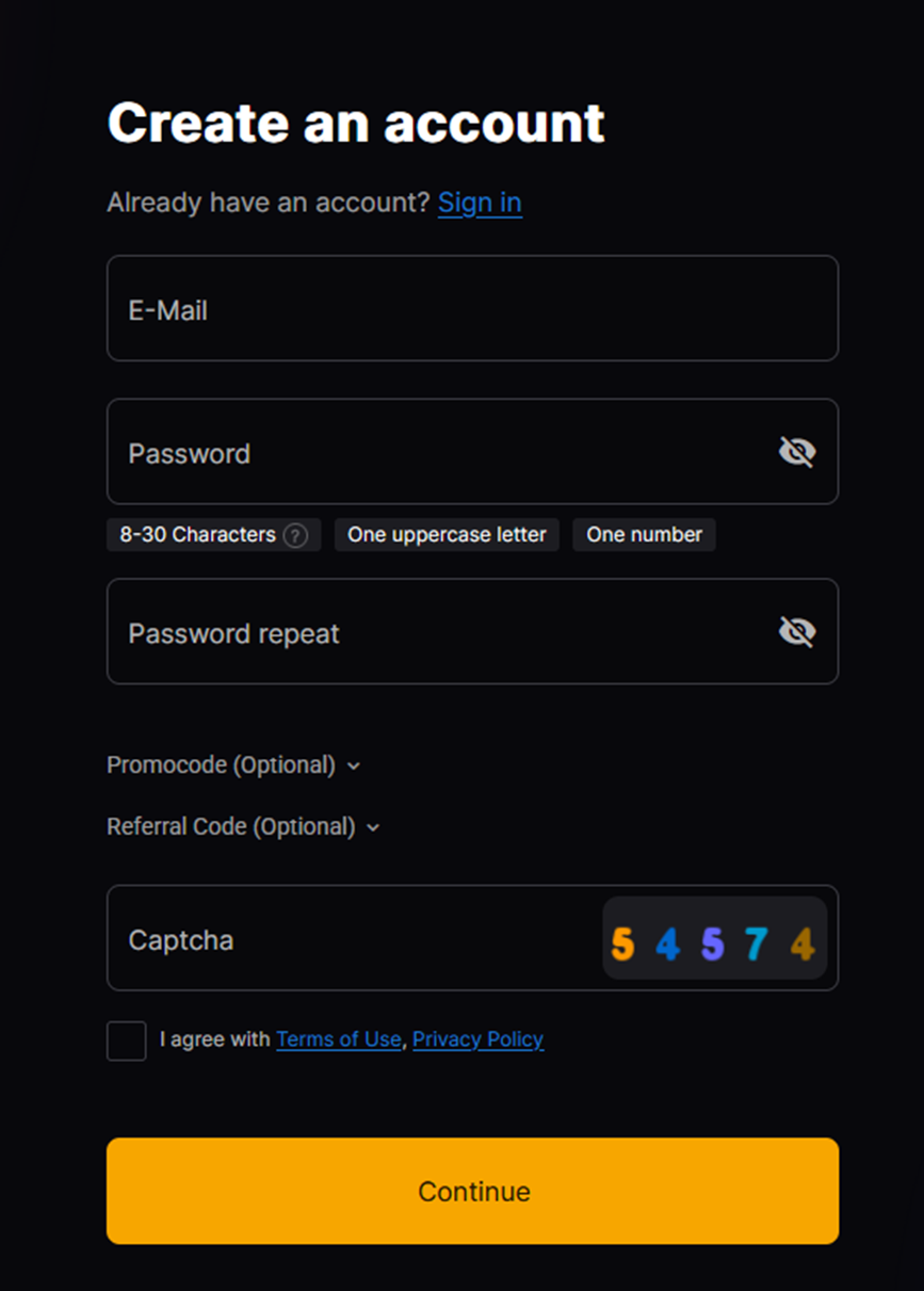 Получить доступ к терминалу могут только авторизованные пользованы. Сделать кабинет несложно, надо в специальной форме указать адрес электронной почте и пароль. Верификация во время регистрации аккаунта не проводится.