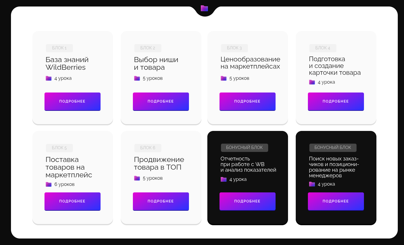 • Бесплатные обучающие ролики по созданию карточек товаров и разбору базовых инструментов селлера$