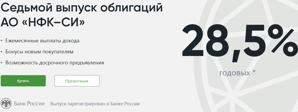 Само акционерное общество НФК Структурные Инвестиции не оказывает услуги частным инвесторам. Но у них есть возможность покупать выпущенные ею облигации на Мосбирже и получать ежемесячный купонный доход.