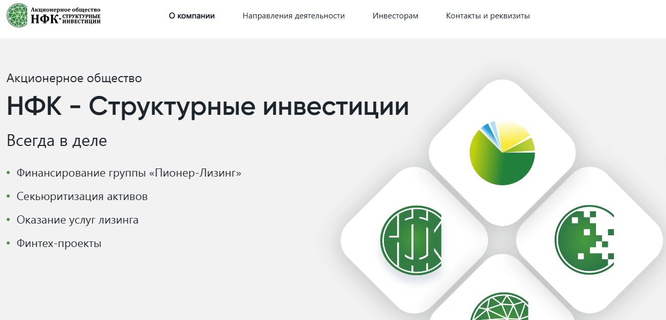 Компания НФК Структурные Инвестиции существует с 2019 года. Ее основное предназначение — выпуск облигаций для материнской структуры Пионер-Лизинг и ее проектов. Бумаги, выпущенные НФК Структурные Инвестиции, торгуются на Московской Бирже.