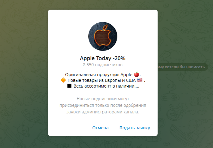 К сожалению, телеграм-канал «Эппле Тудей 20» работает в закрытом формате. Попасть туда можно только после одобрения заявки администраторами. Наш запрос так и не был принят. Такой подход немного настораживает, так как непонятно, к чему такая скрытность.