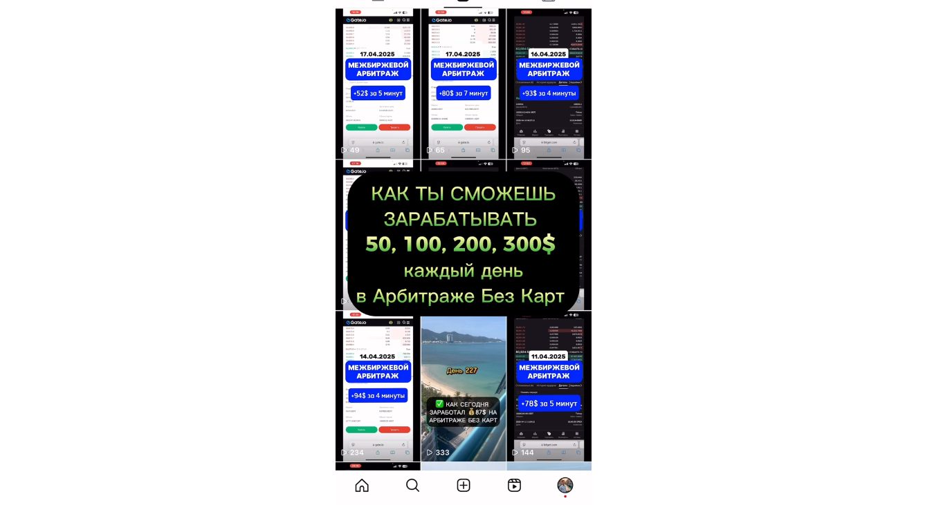 Через YouTube/Instagram каналы автор завлекает подписчиков в телеграм громкими обещаниями. Марк заявляет, что новые участники могут гарантированно зарабатывать до $300 в день без огромного депозита и банковских карт. Для этого предлагают копировать личные схемы арбитражника или использовать сигналы для межбиржевой торговли от платного бота.