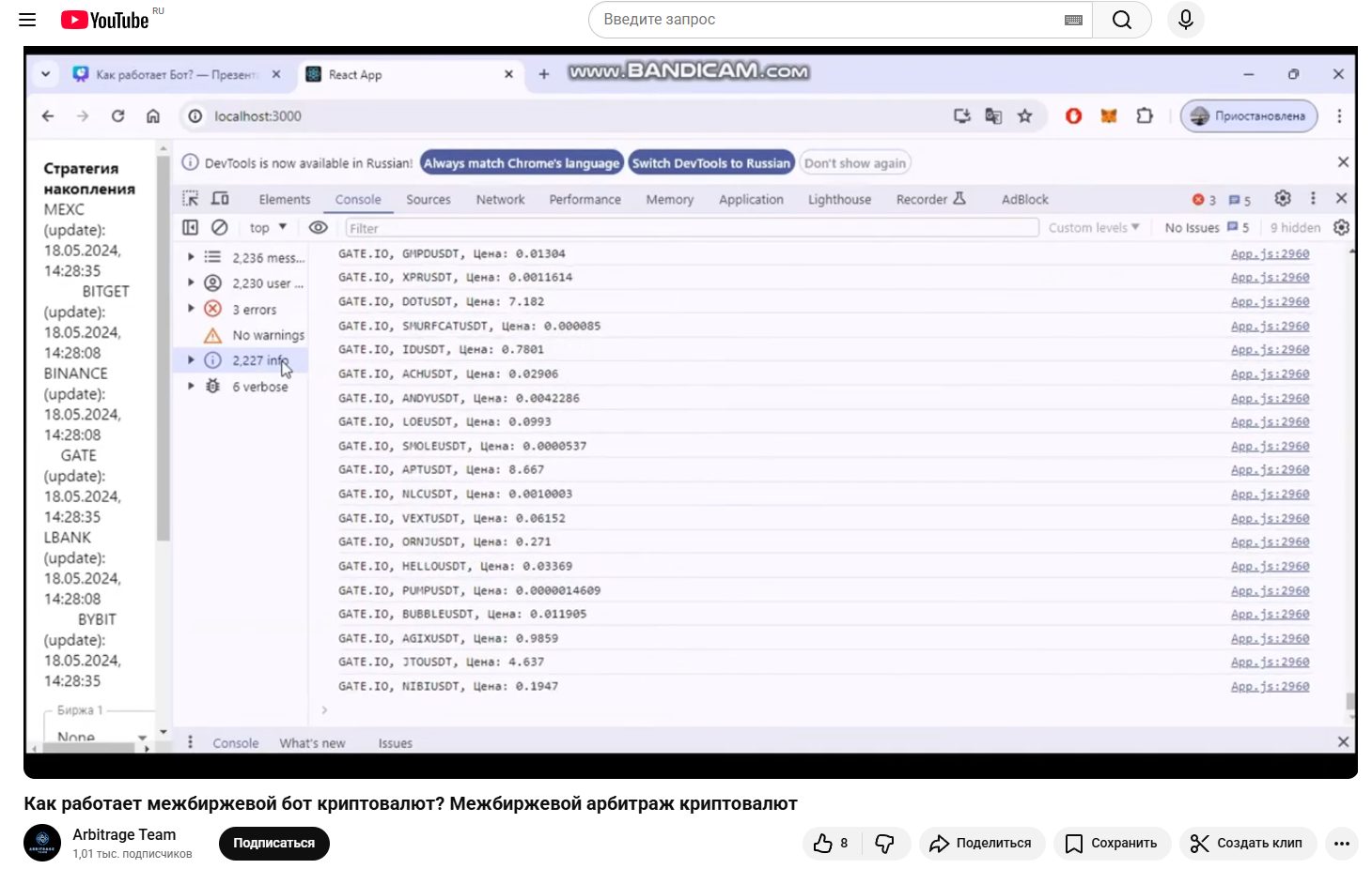 Что касается второго способа, то людям предлагают купить доступ к VIP чату, куда публикуются сигналы от личного бота команды Mark Arbitrage Team. Однако цена высокая, от $300 до $500, особенно при низкой прозрачности и анонимности разработчиков. Оплачивать предлагают криптой, а значит в случае обмана деньги вернуть не получится! Вдобавок в канале мало информации о самом боте, есть лишь несколько кадров на YouTube, где показывают процесс парсинга цен с биржи, но не торговлю по сигналам.