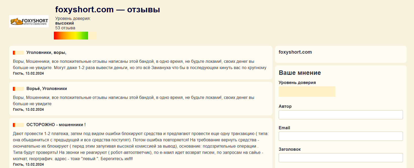• негативные отзывы о мошенничестве.