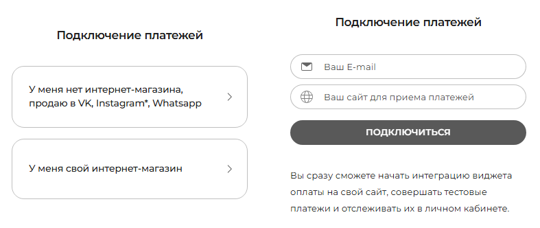 Для регистрации в «Арсенал Пай» нужно заполнить формы, указав свой е-мейл и адрес сайта. Если продажи будут осуществляться через соцсети, потребуется прислать ИНН владельца. Затем следует дождаться, когда менеджер свяжется с пользователем, поможет подключить и настроить онлайн-кассу.