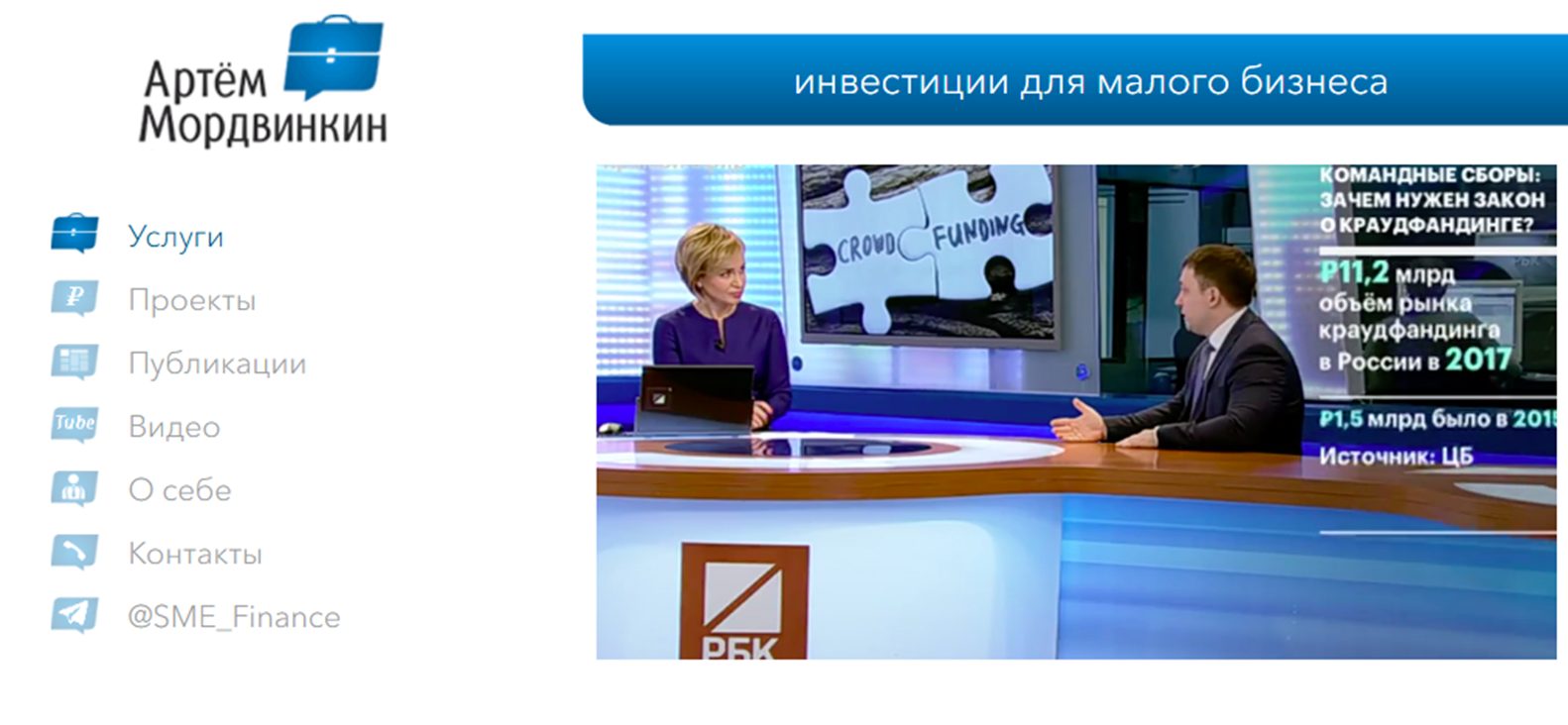 Здесь Мордвинкин выкладывает актуальные проекты для вложений. Нередко пересылает их от краудлендинговой платформы Smally me, которая занимается привлечением инвестиций и выдачей денег заемщикам под залог недвижимости.