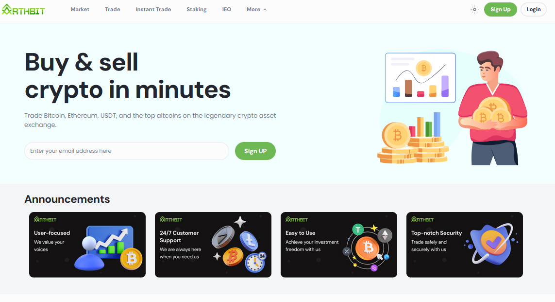 ArthBit – безопасная и надежная биржа, предназначенная для работы с криптовалютой. Платформа открылась в 2021 году, она предназначена для локального рынка Индии. Биржа из Дели используется для спотовой торговли, купли и продажи крипты, стейкинга.