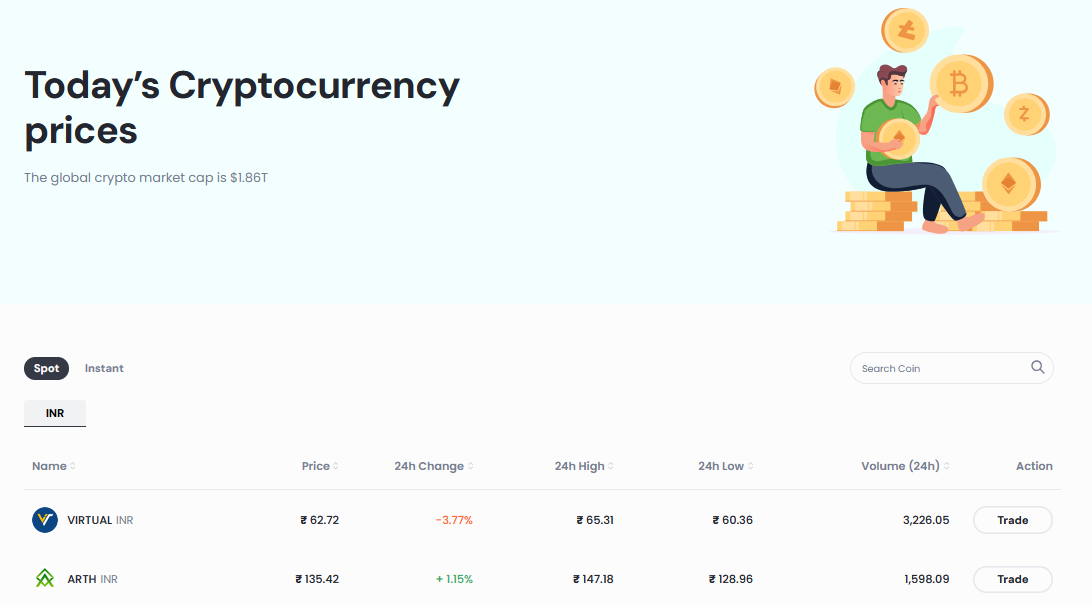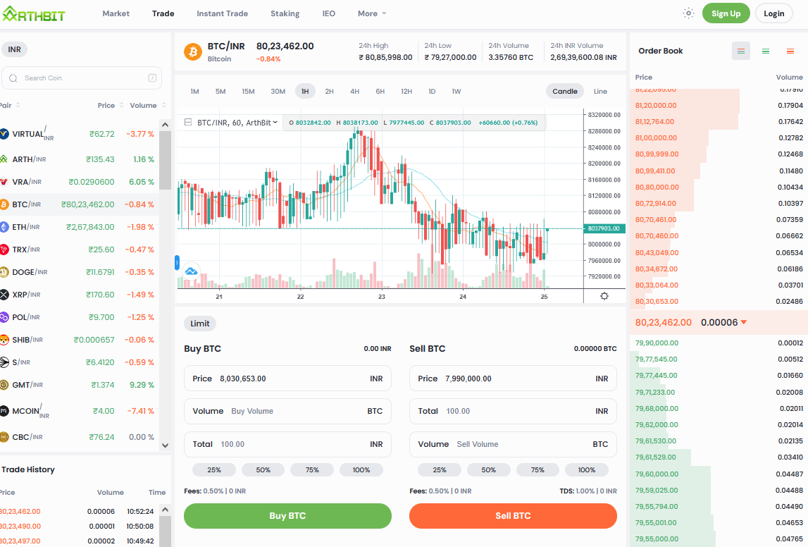 ArthBit com – платформа, предлагающая услуги криптотрейдинга для жителей Индии. На сайте после регистрации можно покупать и продавать крипту, хранить собственные активы, проводить операции обмена. Площадка работает с Bitcoin, ADA, SOL и другими популярными токенами. Полный список и курсы есть на сайте, информация постоянно обновляется.