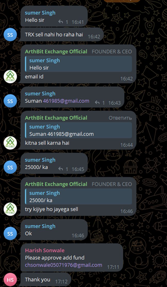 В сети не удалось найти независимые отзывы о работе ArthBitExchange. Компания имеет ветки на профильных сайтах, однако обсуждений работы этой биржи не найдено. Единственные замечания пользователей есть в Телеграмм группе ArthBit Exchange Official. Канал предназначен для общения с техподдержкой платформы. Тут можно задавать вопросы, касающиеся работы биржи, листинга. Жалоб или обвинений в скаме на канале не обнаружено.