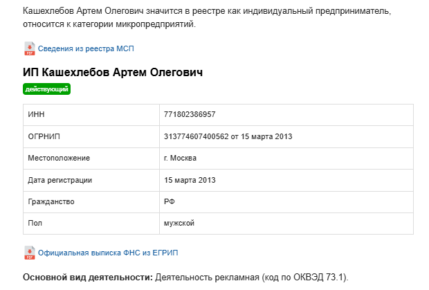 Проверка деятельности Артёма Кашехлебова, отзывы пользователей об услугах и обучении в бренд-агентстве Sensesay Ru