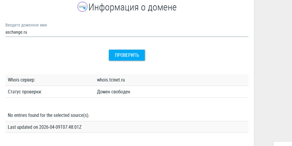 На начало апреля 2026 года домен обменного сервиса Ashange свободен и может быть выкуплен аферистами для того, чтобы потом обманывать пользователей.
