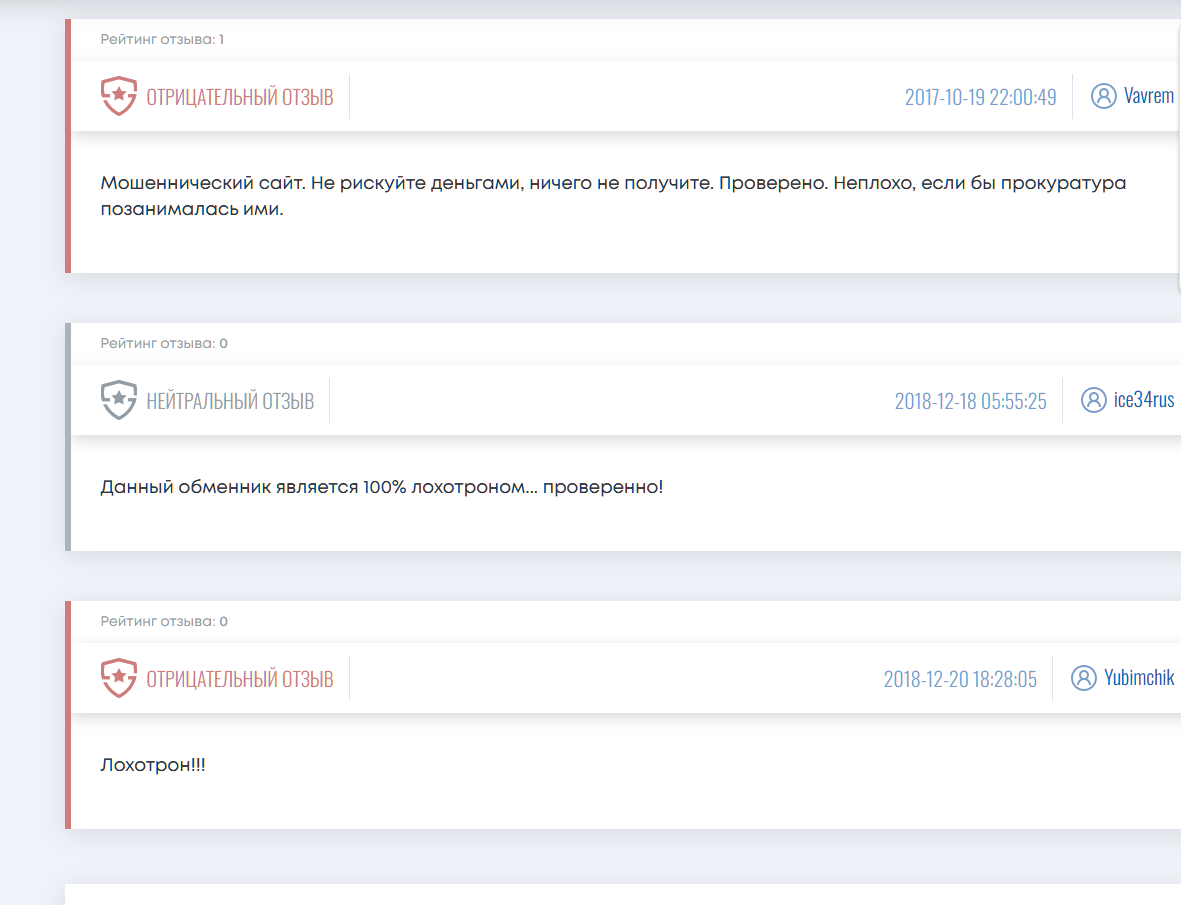 Еще в 2017 году пользователи сообщали, что это скам обменник, деньги в котором исчезают навсегда. Никаких транзакций на этой платформе не проводилось, у трейдеров просто крали деньги.