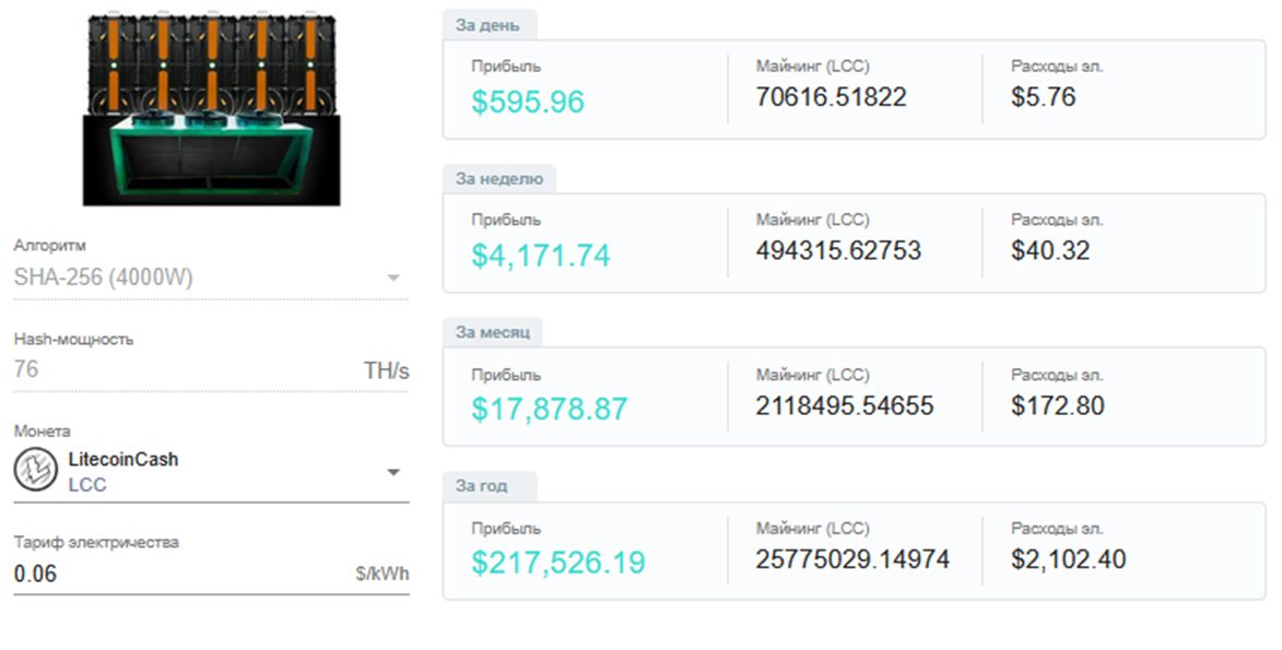 - скорость – 44-76 Th/s;