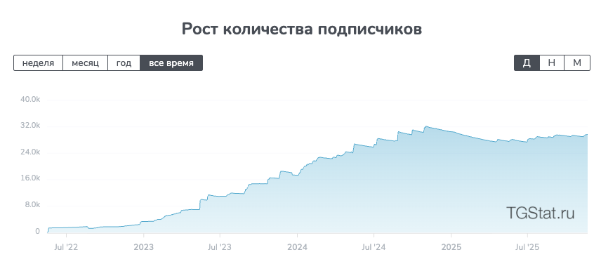 Согласно данным сервиса TGStat, аудитория ТГК растет с июля 2022-го года. Число подписчиков увеличивалось постепенно, что может говорить о том, что это настоящие люди, а не боты.