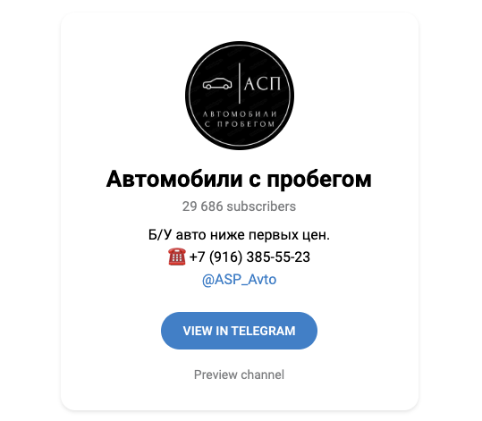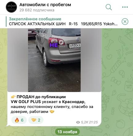 На телеграмм-канал «Автомобили с пробегом», находящийся по адресу ASP Avto, на 21 ноября 2025-го года, подписаны 29,68 тысяч пользователей. Публикации в ленте этого аккаунта получают в среднем по 4-6 тысяч показов, но всего по 5-10 реакций. Возможность оставлять комментарии под постами отключена, что настораживает и может означать, что админ хочет что-то скрыть от подписчиков.