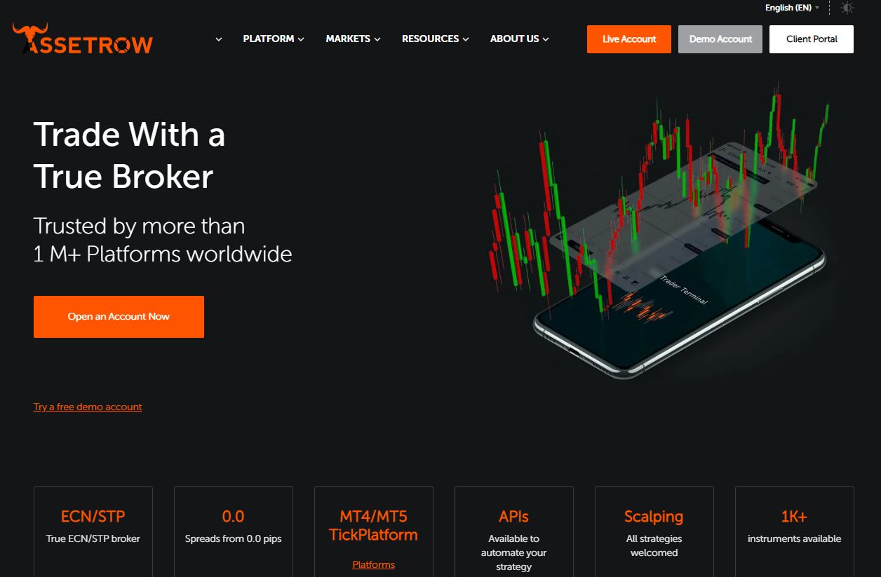 Assetrow — брокер из неизвестной юрисдикции. Компания появилась в 2026 году, активно не продвигается и не рекламируется. Клиентам предлагают стабильную торговлю и низкие спреды.