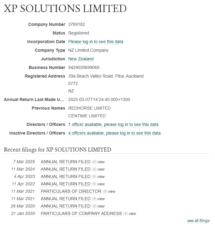 В пользовательском соглашении упоминается компания XP Solution Limited. Из интересного: компания зарегистрирована в январе 2020 года. За это время в фирме сменилось 5 директоров. В реестрах лицензированных финансовых организаций Новой Зеландии компания не значится.