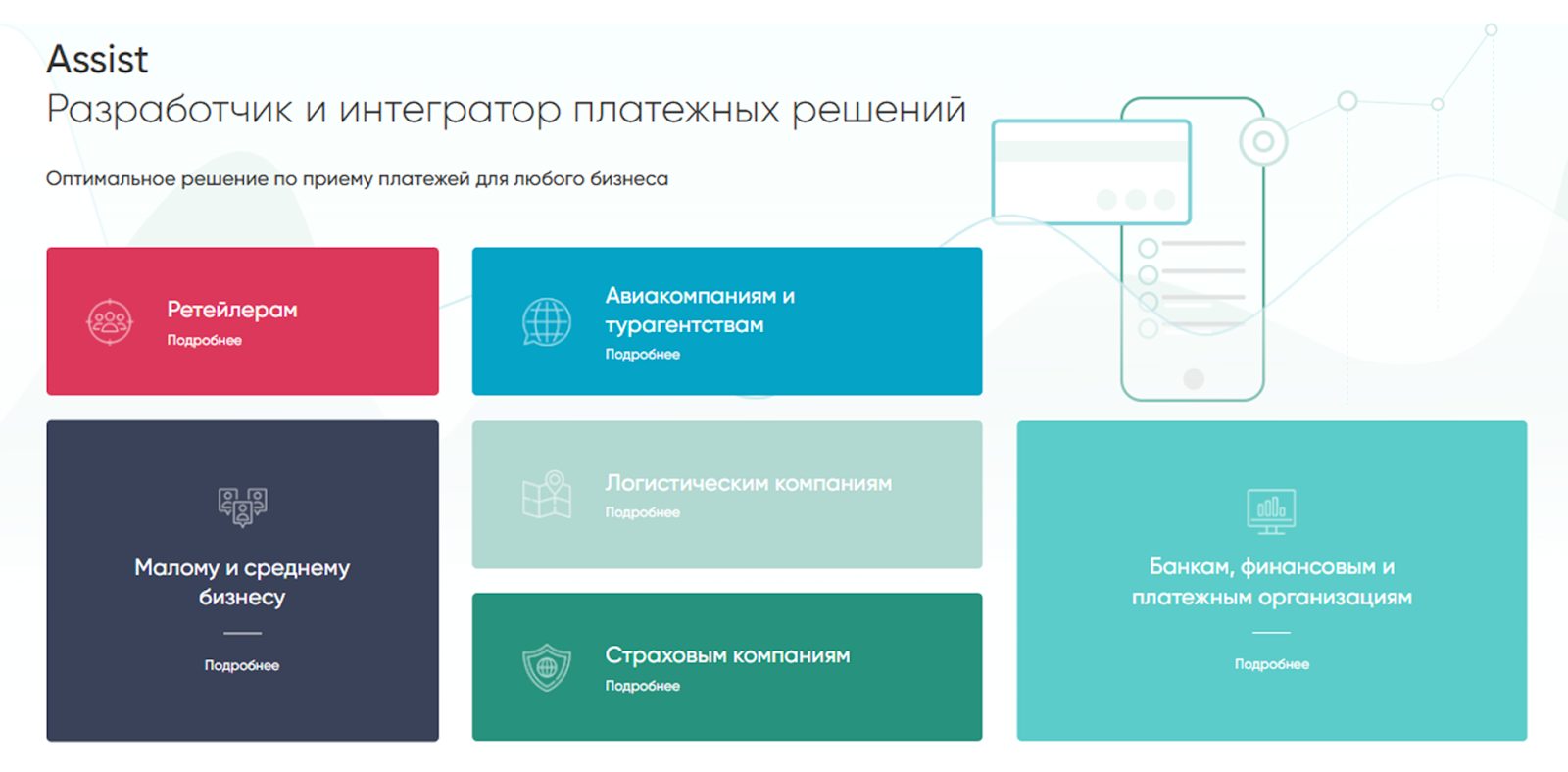 На сайте «Ассист ру» есть информация о целевой аудитории проекта – это ритейлеры, авиакомпании, турагентства, логистические и страховые компании, малый и средний бизнес, банки и финансовые компании.