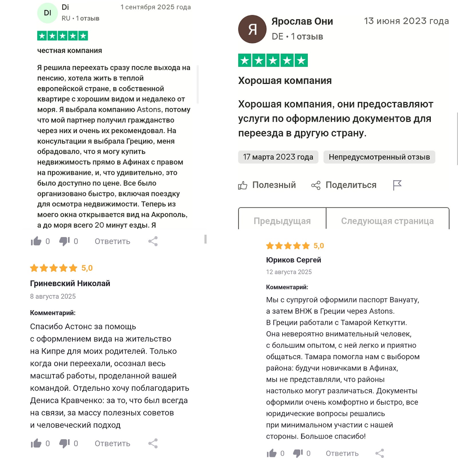 Компания Astons получила лицензии на юридические услуги в Греции и некоторых других странах, а также предоставляет широкий выбор программ. Однако многие клиенты получили отказ в гражданстве и не смогли вернуть потраченные средства на услугу. Главное о компании: