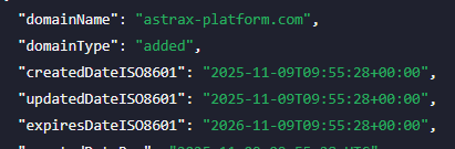 На сайте написано про регистрация компании 1 мая 2013 года. Статус – действующая частная компания с ограниченной ответственностью. Но домен astrax platform com создали только 9 ноября 2025. Ресурсу меньше двух месяцев от роду. Противоречие очевидное. Про возраст компании врут скорее всего.