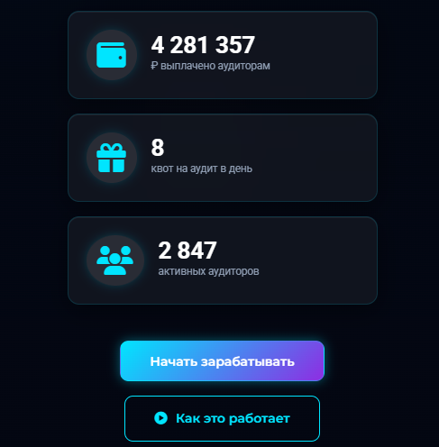 Согласно статистике на сайте, привлеченным аудиторам выплачено свыше 4,2 млн. руб, на начало марта 2026 года у проекта есть свыше 2,8 тысяч активных аудиторов. В интернет-архиве нет скринов работы проекта. Вероятно, сайт запущен в начале 2026 года.