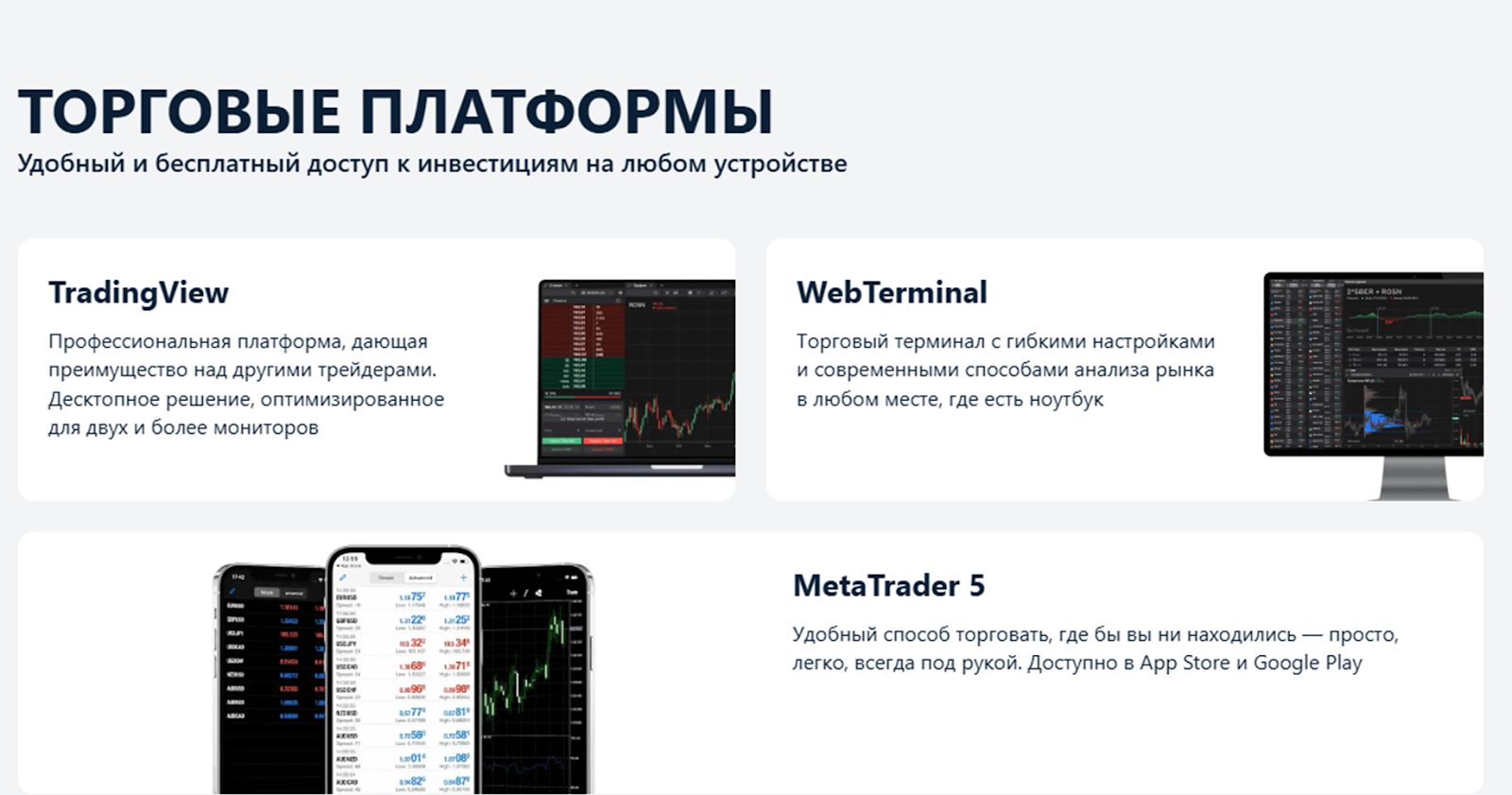 Поражает выбор терминалов, разработчики заявляют, что сотрудничают с такими платформами как MetaTrader5, TradingView, WebTerminal. Любой из видов софтов доступен с десктопа или мобильного. Упоминается, что есть эксклюзивное мобильное приложение, но ссылок на его скачивание на сайте нет. Стоит заметить, что сайт Austraclear online не отличается обилием информации и представляет собой простейший одностраничник.