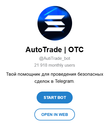 В Телеграмме AutiTrade bot зарегистрирован под именем AutoTrade OTC и показывает 21 918 пользователей в месяц.