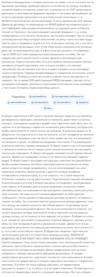 Далее сотрудники требуют крупные суммы на растаможку, утильсбор или доставку. При запросе реального видео машины или возможности осмотра начинаются отговорки с последующей блокировкой аккаунта и удалением переписки. Жертвы сообщают о потерях от десятков тысяч до миллионов рублей без получения автомобиля.