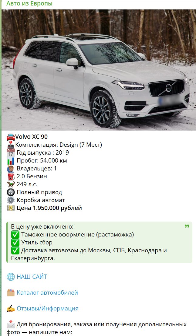Auto Euro Prigon – это тг-канал, который предлагает услуги по пригону автомобилей из Европы в Россию и Беларусь под ключ. Сервис заявляет о себе как об удобной платформе с выгодными ценами, полным сопровождением и включением таможенных платежей, а также утилизационного сбора в стоимость. Однако неизвестно, насколько проект является надежным. В этой статье мы разберем структуру платформы и выясним, можно ли доверять Auto Euro Prigon при покупке автомобиля.