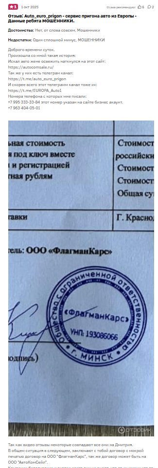 Мы не рекомендуем связываться с Auto Euro Prigon. Если вы уже стали жертвой этого канала, поделитесь своим опытом в комментариях.