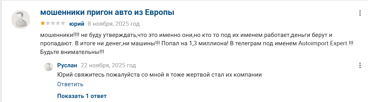 Отзывы о канале в Телеграмм AutoPrigon from Europe