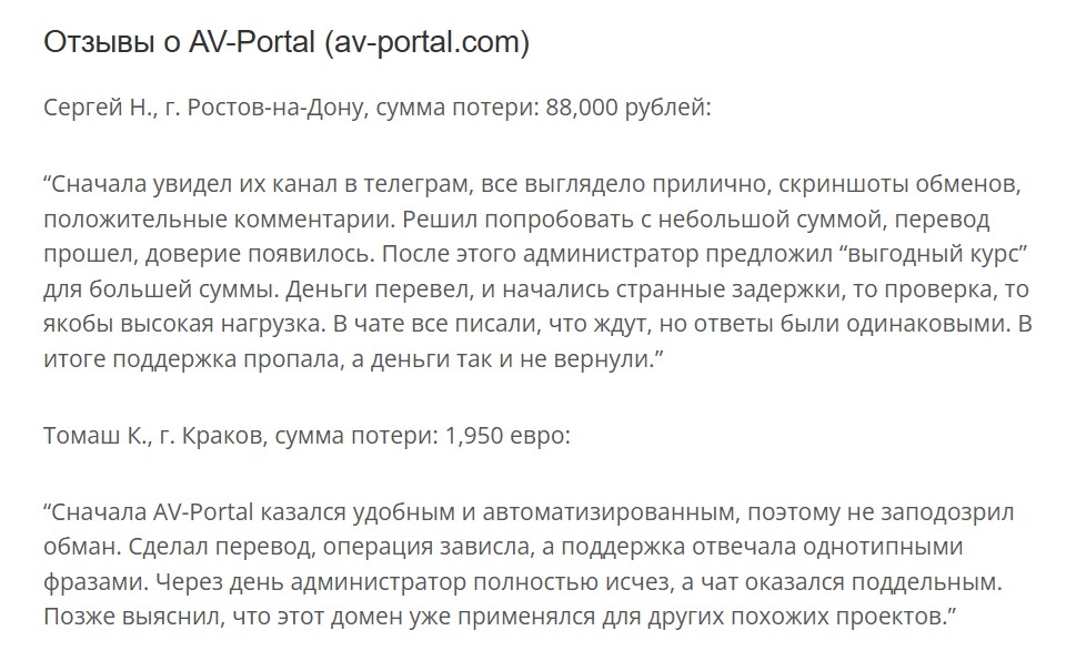 Если у вас был негативный опыт с AV Portal, расскажите об этом в комментариях. Ваша история может уберечь других людей от потерь.
