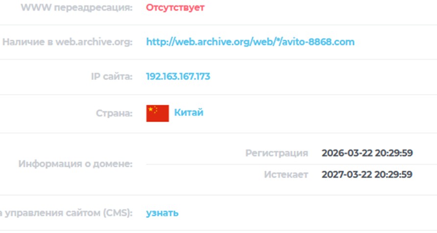 Вопросы возникают и к самой платформе. Официально заявлено, что она работает с 2004 года. Но домен был зарегистрирован только 22 марта 2026. Активность на сайте низкая, архивные данные не найдены.