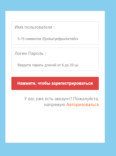Пользователям необходимо зарегистрироваться в магазине, чтобы начать зарабатывать на торговле товарами. Для регистрации достаточно прописать логин и надежный пароль. Верификация личности и прочие данные о человеке не нужны.