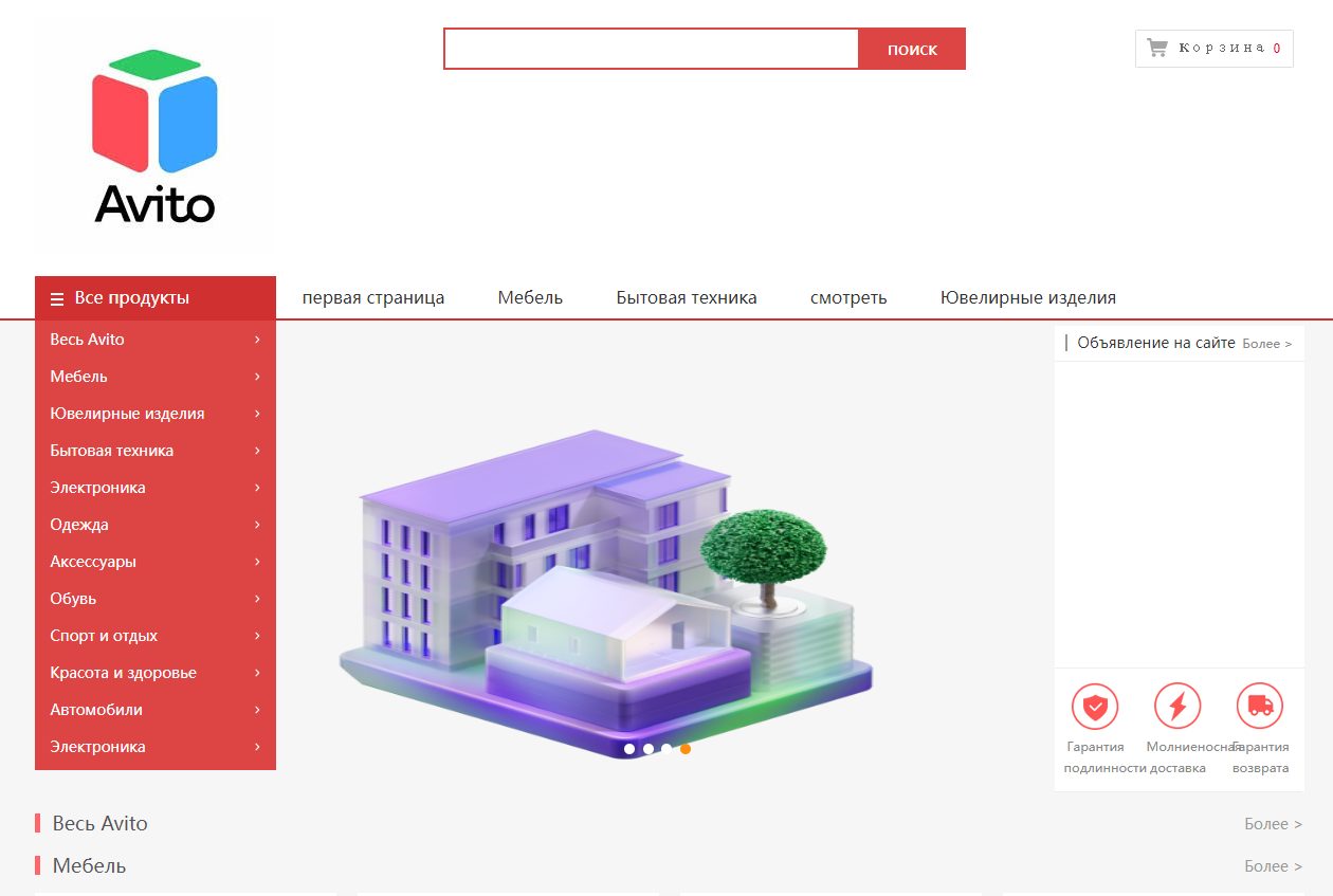 Официальный сайт компании локализован для русскоязычных пользователей. В левой части можно найти разделы с названиями товаров, которые продают в интернет-магазине. Если пользователь пролистает страницу ниже, то на экране отобразятся вещи из каталога «Авито Зона ком» со стоимостью и описанием.