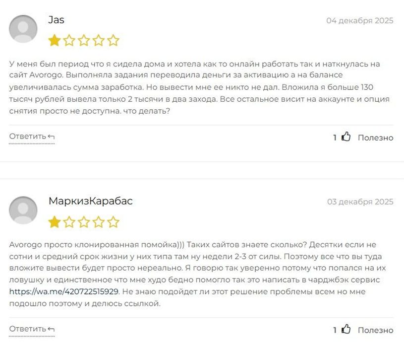 Магазин Avoro Pte специально повышает продажи, якобы стремясь улучшить репутацию. Но на самом деле продавцы не применяют такую схему. Зарабатывать данным методом нельзя. Мошенники забирают средства себе. Первые суммы могут выводиться, поскольку они небольшие. Это позволяет втереться в доверие, убедить пользователя в надежности проекта. Затем требуется выкупить дорогие товары, но деньги не перечисляются.