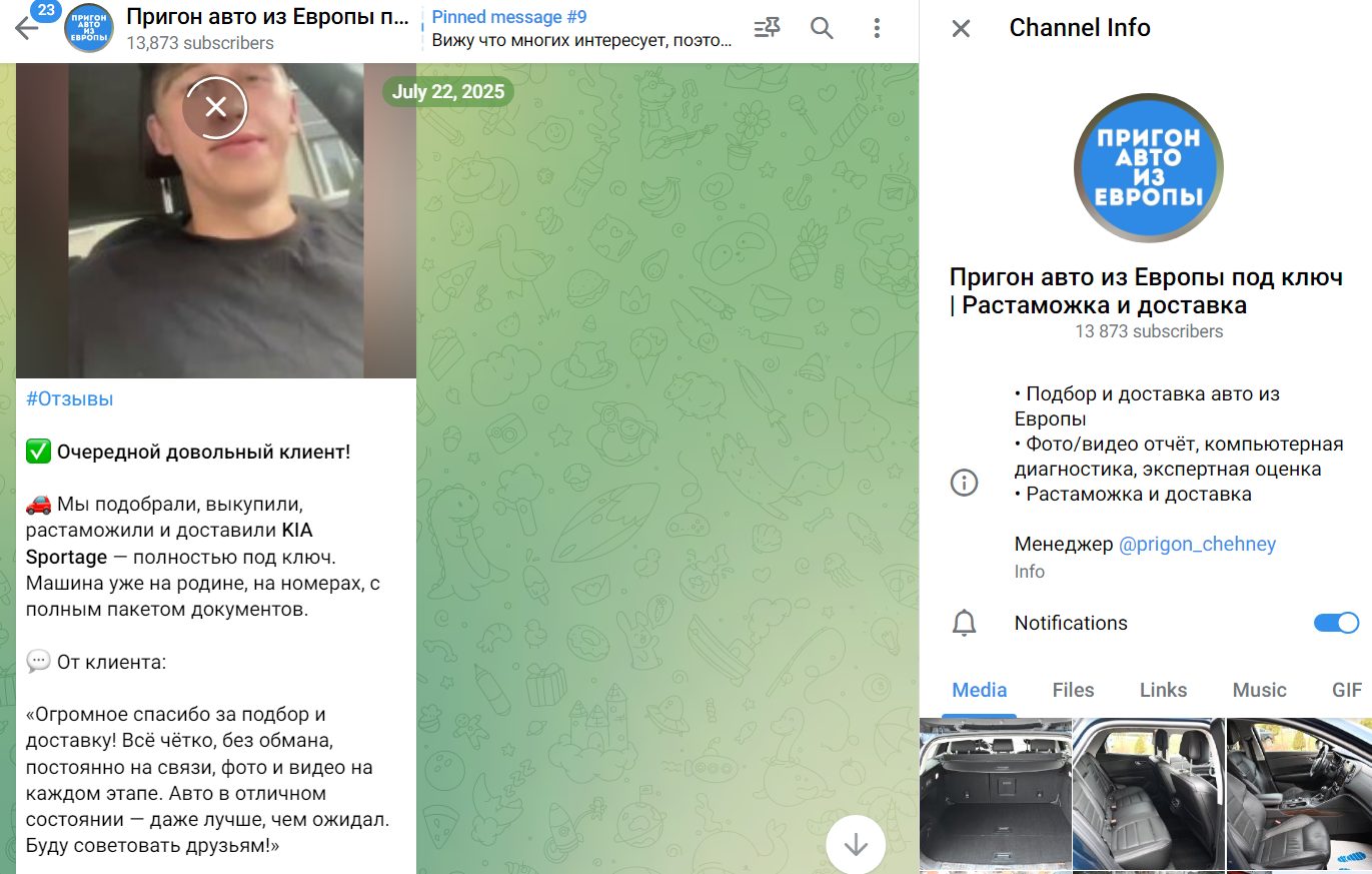 О своем опыте работы в области продаж не говорит, и время для приема смс не указывает. На момент написания статьи сообщество сменило название на Пригон Авто из Европы под ключ Растаможка и Доставка. Телеграмм канал под руководством админа Автоэксперт функционирует с 2022 года, и на 2026 год здесь более 13k фолловеров. Актив проявляют 1-3k из них, и это признак накрутки.