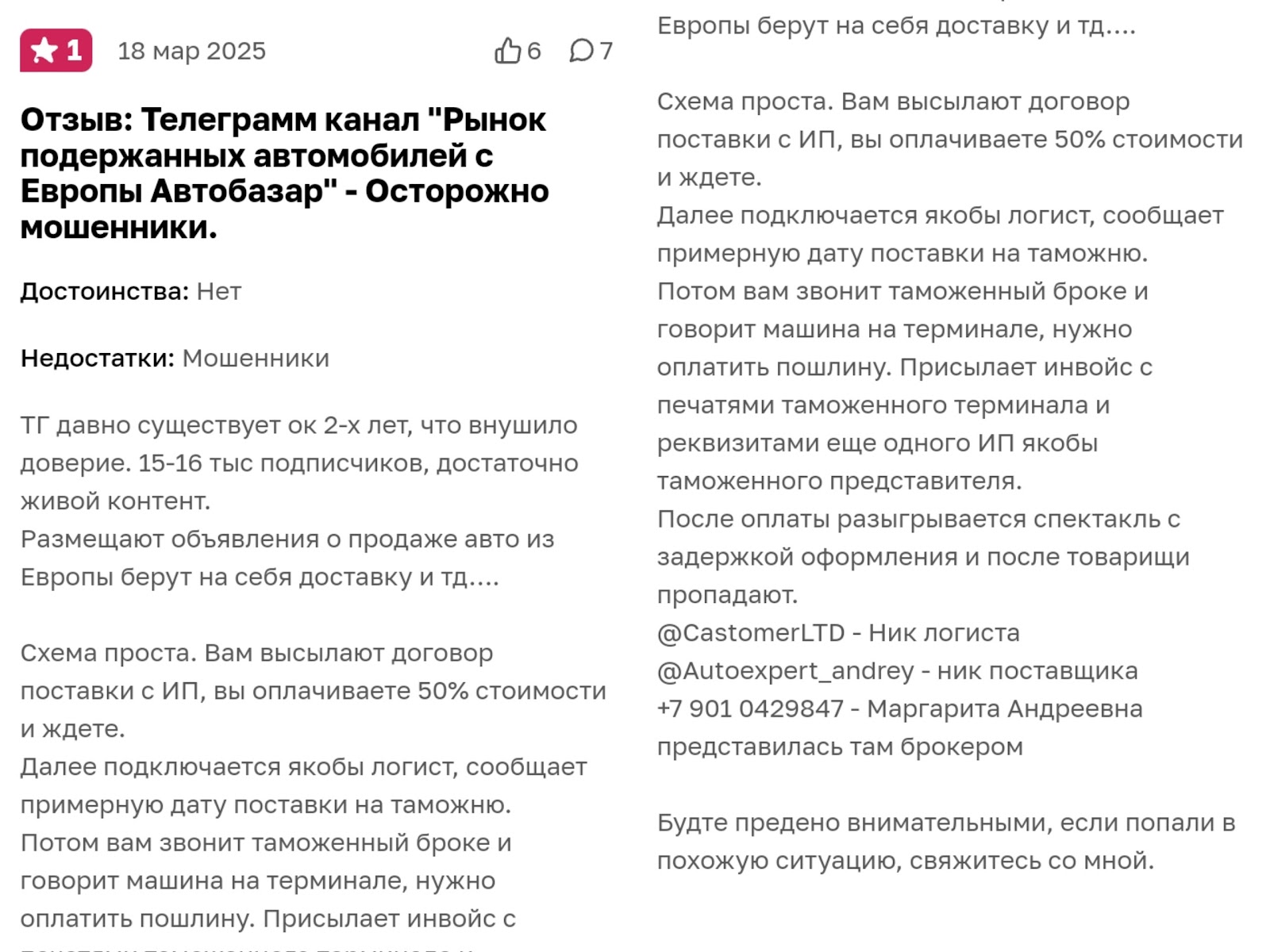 Оставлять комментарии в блоге нельзя, а в сети мы нашли отзывы о мошенничестве админа Телеграмм канала Автоэксперт.