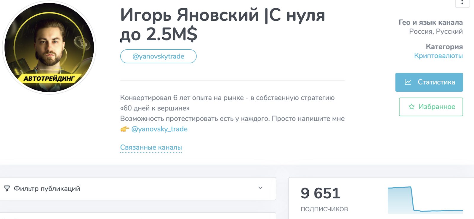 Яновский — автор сомнительного тг-канала, уверенно называющий себя создателем стратегии гарантированного заработка на криптовалюте. Если верить его словам, чего мы делать не собираемся, он успешно занимается трейдингом более семи лет и к 2025 году заработал около $1 млн. Такие заявления не могут остаться без внимания и привлекают подписчиков, желающих заработать «здесь и сейчас».