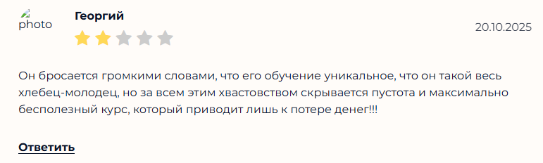 При изучении реальных мнений пострадавших становится ясно, что перед нами — откровенный лохотрон, заработок на котором невозможен даже в теории. Бывшие клиенты Яновского понесли серьезные финансовые потери и призывают не повторять их ошибок.