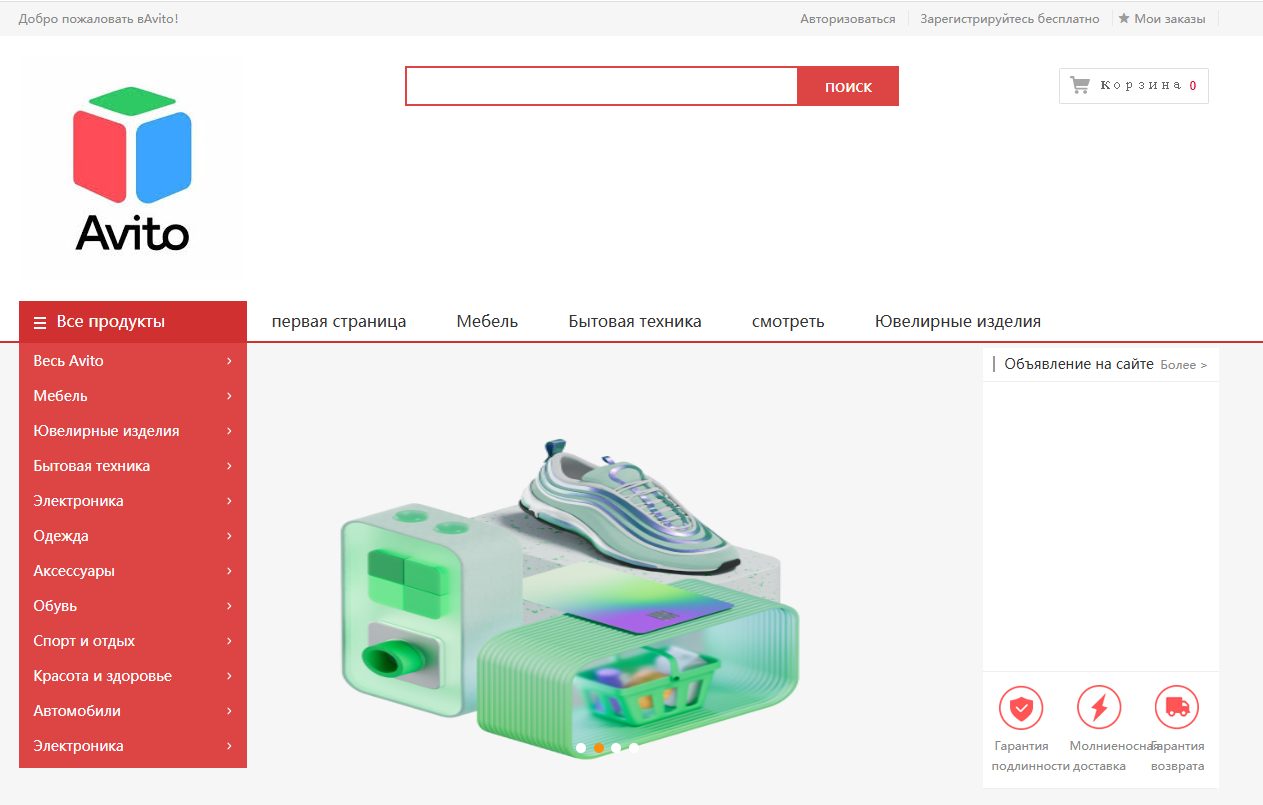 Кроме того, сайт даже близко не напоминает оригинальную платформу Авито: