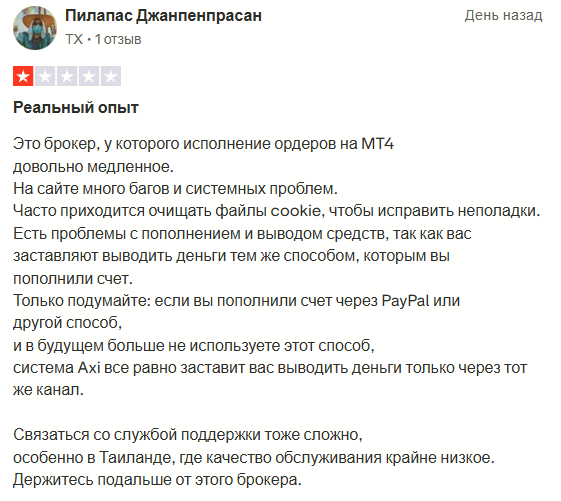 Отзывы об axi com также критикуют техподдержку. Письма без ответа. По телефону не дозвониться. Качество обслуживания в разных странах отличается. Есть обвинения в обмане. Клиенты пишут – после депозита деньги не вернуть. Аккаунты блокируются внезапно. Это намекает на развод клиентов.