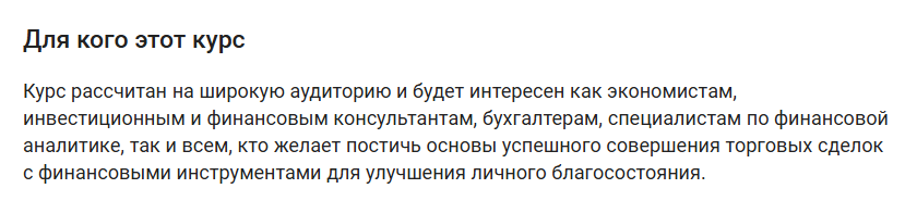 Курс появился в интернете осенью 2019 года. Информации по последующим обновлениям программы нет. Не исключено, что на январь 2026 года курс уже устаревший и не соответствует специфике современного финансового рынка. В связи с этим рациональность потраченного на обучение времени остается под вопросом – знания могут попросту не пригодиться на практике.