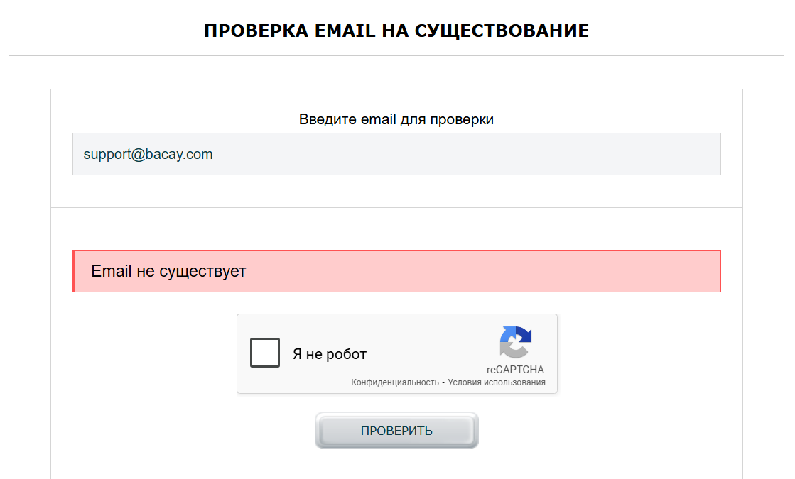 Для связи указана электронная почта support@bacay com, но она не существует. Также есть номер телефона и адрес офиса, но и они фейковые. Каналы в соцсетях у фирмы отсутствуют.