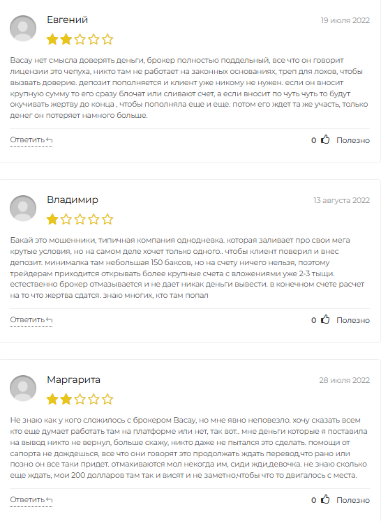Отзывы о данном брокере в сети негативные. Люди подтверждают, что за проектом стоят мошенники, которые обещают достойный доход на трейдинге, но не дают выводить средства.