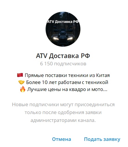 Важная деталь: «ATV Доставка РФ» является закрытым каналом. Попасть туда можно только после одобрения администратора. Такой ход создает иллюзию эксклюзивности, но на деле помогает мошенникам фильтровать неудобных пользователей и критиков.