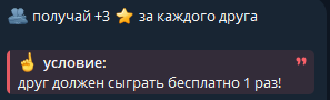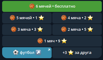 В Basketball Gift Bot также есть реферальная программа: за каждого приглашенного друга начисляют 3 звезды с условием, что друг сыграет хотя бы один раз бесплатно.