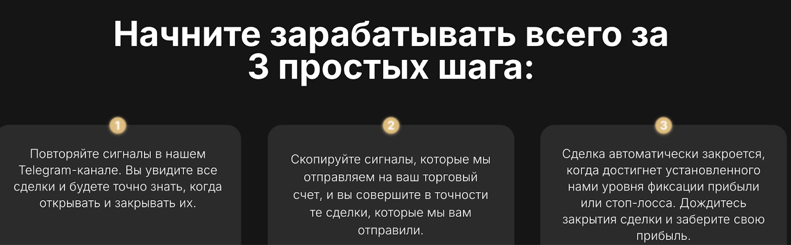 Основной акцент сделан на простоте: якобы достаточно следовать указаниям, чтобы видеть рост счета, без глубокого погружения в анализ. Однако для входа в эту группу требуется регистрация на рекомендованной платформе, что намекает на партнерские связи. В итоге проект выглядит как смесь бесплатных тизеров и более закрытых опций, ориентированных на привлечение через обещания стабильного дохода.