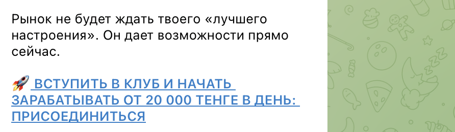 Для обмана аудитории Бекнард использует классический «метод воронки». Сначала посетителей завлекают красивыми скринами профита и рассказами про «20 минут в день — и ты в плюсе». Потом плавно переводят в личку, где раскручивают на покупку ВИП-доступа в закрытый чат.